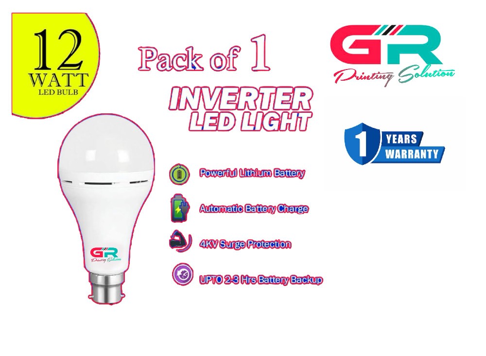 Illuminate your space with the GR Rechargeable LED Bulb 12w. This energy-efficient bulb comes with a 1-year warranty and provides up to 3 hours of backup during power outages. Say goodbye to darkness and enjoy reliable, long-lasting light with this versatile LED bulb.